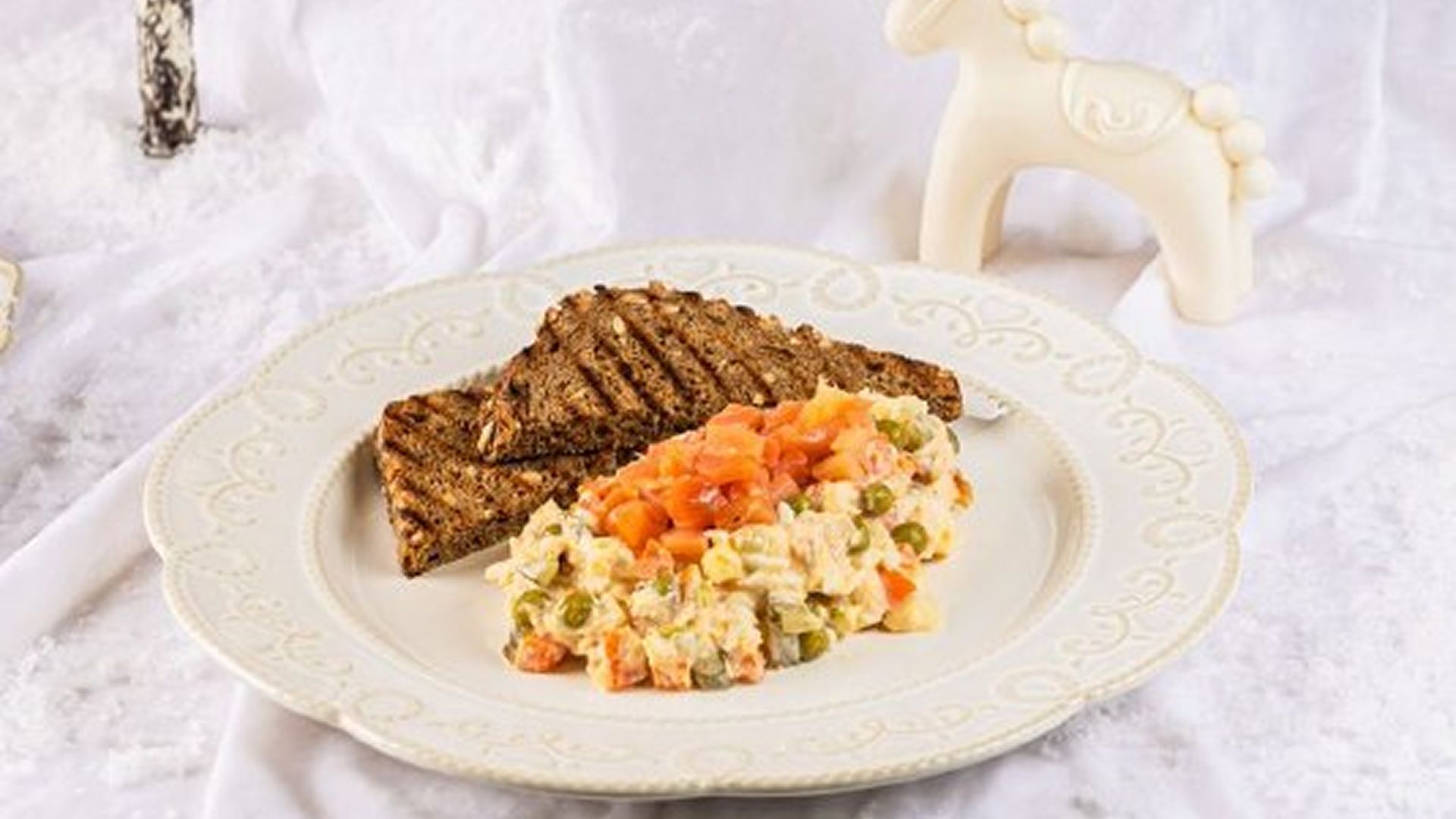 Салат «Золотая рыбка» — ваш любимый оливье с копчёным и слабосолёным лососем.
